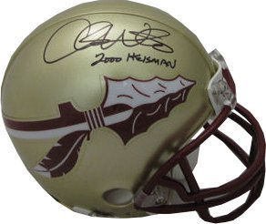 Product DescriptionIn 1998, Chris Weinke led the Florida State Seminoles to a 9-1 record and #2 national ranking before a season-ending neck injury forced him to the sidelines. During his junior season in 1999, he led the #1 ranked Seminoles to the school's second national championship, defeating Michael Vick and the Virginia Tech Hokies 46-29 in the Sugar Bowl. As a senior in 2000, Weinke led the nation in passing with 4,167 yards and won the Heisman Trophy, awarded to college football's best player, as well as the Davey O'Brien Award and the Johnny Unitas Award. He also led the Seminoles to the Orange Bowl for their third national championship game in as many years. Chris Weinke has hand autographed this Florida State Seminoles Replica Mini Helmet with 2000 Heisman inscription. Photo of the Signing and Certificate of Authenticity from Athlon Sports.